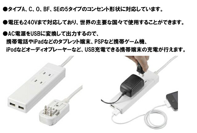 YAZAWA ヤザワ 海外 用 マルチ 変換タップ A C O BF SE タイプ 2個口+USB 2ポート たこ足 HPM6AC2USB2WH (ya0a058)【国内不可】